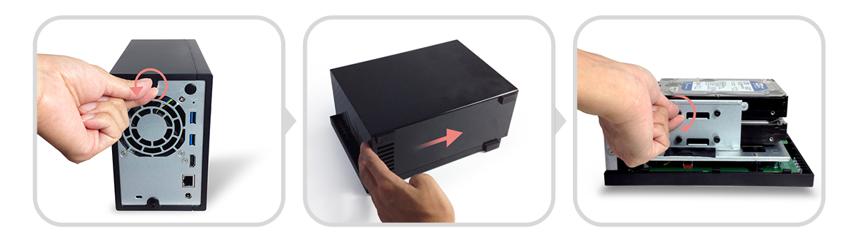 AS31 serisinde Dış kapak tasarımı gerektiğinde kaydırarak kolayca açılmasını sağlar. İç sabit disk kızakları ve dış kapak başka bir alet kullanılmadan disklerin kolayca takılabilmesine imkân sağlayan el vidalarına sahiptir.