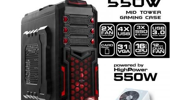 550W güç kaynağı, ön panelinde bulunan 2x USB 3.0, 2x USB 2.0, dahili ses ve mikrofon ve