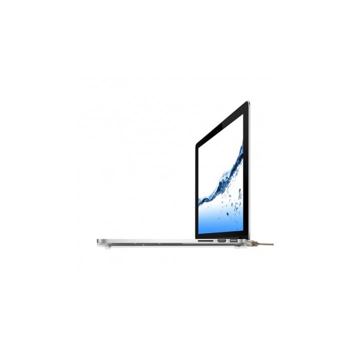 Şeffaf Macbook Pro kılıfı bir güvenlik yuvası içerir. Basit ama zeki bir çözüm olan bu yuvaya takacağınız kilidi başka bir nesneye sabitleyin ve bilgisayarınızı çalınmalara karşı koruyun.