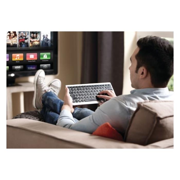 Açıklama : - Yumuşak ve sessiz tuş vuruşu için son derece konforlu tuşlar\n- Cihazınızı otomatik olarak algılar\n- Fırçalanmış alüminyum kaplama\n- 9 özel doğrudan erişim tuşu*\n- 10 metreye kadar kablosuz bağlantı menzili\n- iOS için 9, Android ve Windows için 8