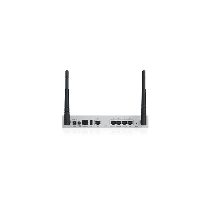 * 3 x GbE LAN/DMZ, 1 x GbE WAN, 1 x GbE OPT * 1 x USB * 802.11 b/g/n * 2.4GHz * 8 x SSID